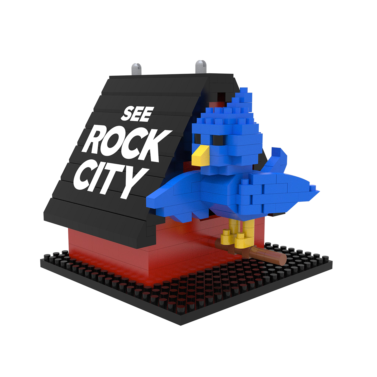 Our iconic See Rock City birdhouse has been transformed into a building block toy.